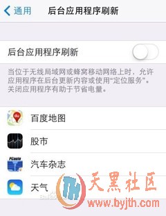 在iOS7系统中,进入设置——通用——后台应用程序刷新,用户就可以决定哪些应用能够在Wi-Fi或移动网络环境中在后台刷新内容,或者是使用定位服务。