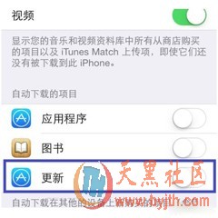 进入“设置”中iTunes Store和App Store的选项,将更新项目打开,就可以实现完全自动的更新下载和安装了。当然,如果你不喜欢自动更新的话,也可以把它关闭。
