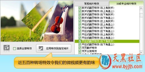 图3、近五百种转场特效为制作的微视频赋予最合适、最具韵味的效果