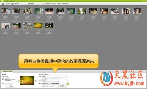 如果你制作的微视频蕴含了一个动人的故事,你可以点击“修改名字/注释/旁白”按钮,在弹出的对话框中为你制作的微视频配上优雅的旁白,将这个微视频蕴含的故事娓娓道来。