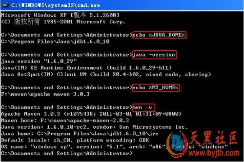 打开命令提示符(开始---运行---cmd),检查我们的java环境和maven环境是否有误。