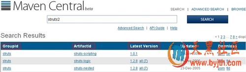 假如,我们想下载一个struts 的jar包。在搜索框内搜索strruts ,会要列出中央仓库中的所有struts版本。