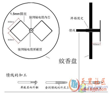蚊香盘自制增益天线示意图