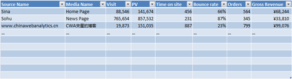 如果你问我,我网站分析中使用的最多的工具是什么,我的答案不是Google Analytics,也不是Omniture的一众工具,而是Excel。很多时候,我其实不是特别关心Google Analytics和付费工具的异同,很多时候我都是在Excel中实现分析的,WA工具只不过是我分析所需的原材料而已。这也是为什么,商用网站分析工具必须保留并提供Raw Data(例如Omniture SiteCatalyst提供Data Warehouse功能)。