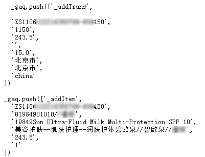 同样,对于_gaq.push(['_trackTrans'])这个命令也可以挖掘的很深,你可以把更多商品的分类信息、价格以及按照你的要求总结的信息通过动态变量的方式传递给GA。GA对于商品的监测也能变得更强大。