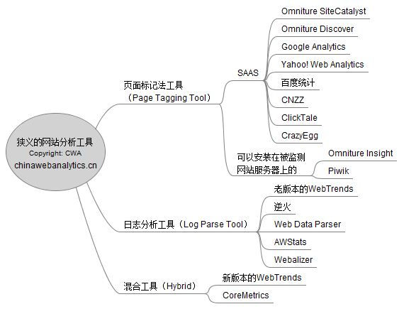 谈到这里,我想把WA工具的范围做一个延伸,我们常用的GA、SiteCatalyst、CNZZ或者百度统计,只不过是网站分析的点击流分析工具,网站分析工具应该有更大的包容范围。