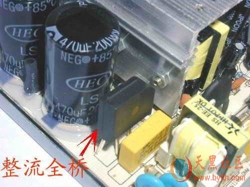 首先,我们要知道计算机开关电源的工作原理。电源先将高电压交流电(220V)通过全桥二极管(图1、2)整流以后成为高电压的脉冲直流电,再经过电容滤波(图3)以后成为高压直流电。