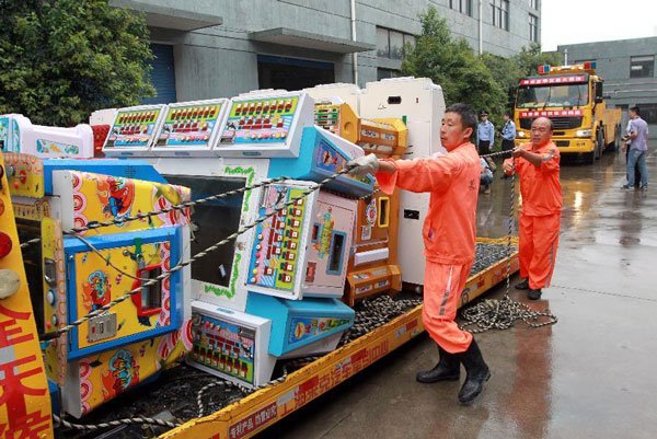 19日,上海市公安局在集中公然烧毁了查获的赌钱游戏机4000余组。据悉,本年以来,上海警方共取消无证游戏机房2100余荚冬破产整理违法违规场合120荚痘刑事拘留150余人,行政拘留4100余人。