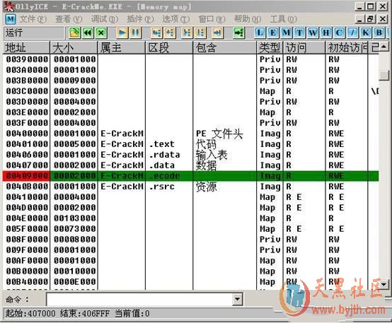 点查看内存,找到ECODE段,在ECODE段F2下断,然后然后填入任意注册码点击注册