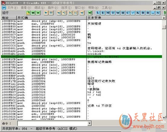 我们可以看到找到的按钮事件地址0040A0BD和Ecode法是相同的,到这里后F8单步走,马上到达破解的核心处了。当然此时也可以查找字符串直接定位破解核心。