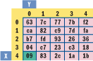 1 0 0 0 1 0 0 0 0 0 0 0 1 0 0 0 XOR 1 0 0 0 0 0 0 0AES 算法的主循环对 State 矩阵执行四个不同的操作,在规范中被称为 SubBytes(字节替换)、ShiftRows(行位移变换)、MixColumns(列混合变换) 和 AddRoundKey。除了每次循环 AddRoundKey 都被调用并使用密钥调度表的下面四行外,AddRoundKey 与预备处理步骤中的 AddRoundKey 相同。SubBytes 例程是一个代替操作,它将 State 矩阵中的每个字节替换成一个由 Sbox 决定的新字节。比如,如果 State[0,1]的值是 0x40 如果你想找到它的代替者,你取 State[0,1] 的值 (0x40) 并让 x 等于左边的数字(4)并让 y 等于右边的数字(0)。然后你用 x 和 y 作为索引 进到 Sbox 表中寻找代替值,如 Figure 2 所示。