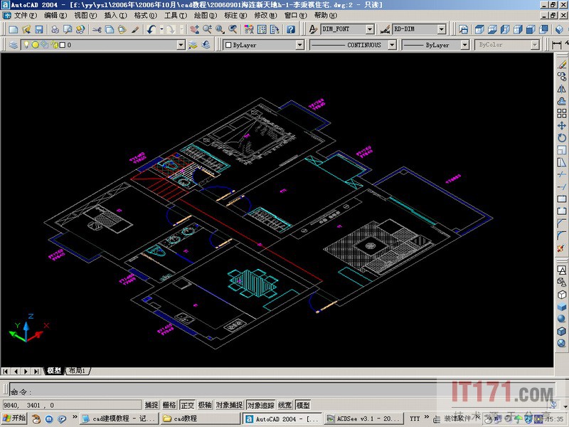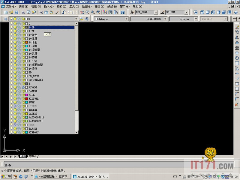 2、图层做好后直接插入cad平面图,把它放在1-2d图层,然后把该图层冻结(作为建模的参考图层)。
