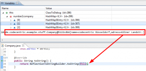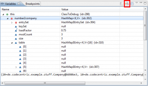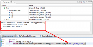 变量视图是使用对象的toString方法来现实对应的值。因为这个原因,如果提供友好的toString方法实现,对调试来说会非常有用。在javadoc中关于java.lang.Object的默认toString实现,也是这样推荐的: