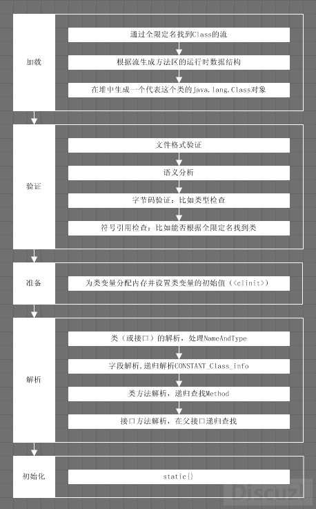 类加载的时机就很简单了:在用到的时候就加载(废话!)。下来看一下类加载的过程: