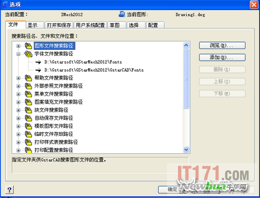 在这里,我们可以调整文件的保存路径,对图形文件搜索路径、字体文字搜索路径等设置。比如当我们找不到字体文件时,就可以通过下面给出的字体文件路径找到。