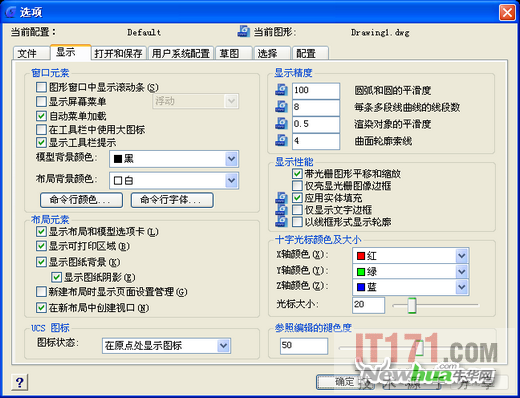 我们再切换到【显示】选项卡,在显示中的右下角可以调整十字光标的颜色以及大小(如图2)。