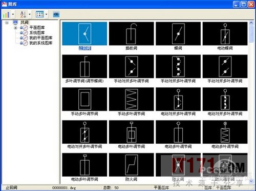 完成入库的阀门我们可以直接在“阀门插入”功能中查询并引用,运行“通风空调-阀门”命令,在弹出的窗口中双击任意一个不常用的图形示例即可链接至阀门数据库,选中刚刚入库的阀门双击即可将此阀门添加至常用阀门示例,以便用户在使用过程中快速调用。