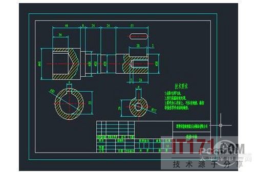 这张图纸属于一个连接器,整体来看是是一个轴。那么我们就可以使用浩辰CAD机械软件中的轴的设计来做一个大体的图形出来。