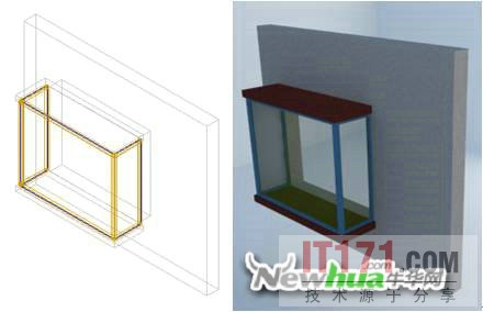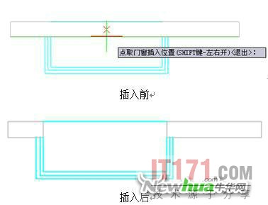 在对话框中,选择【插凸窗】的模式。然后在刚才绘制的墙体上点击一下,该窗户就能够正确插入了,下面让我们来看一下插入后的前后效果对比(如图5)。