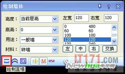 之后,在左侧的菜单中,寻找【墙体】菜单,并使用绘制墙体命令,完成一道简单的墙体绘制(如图2)。