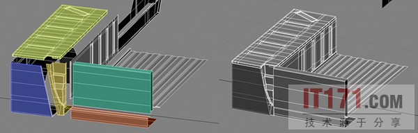 关于行李箱部分,我每个面板单独的制作出来,然后再把它们合并起来。(图03)