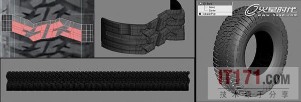 至于轮胎,我首先制作了一段轮胎的样式,然后我以360度一圈重复复制这段样式就可以。(图07)