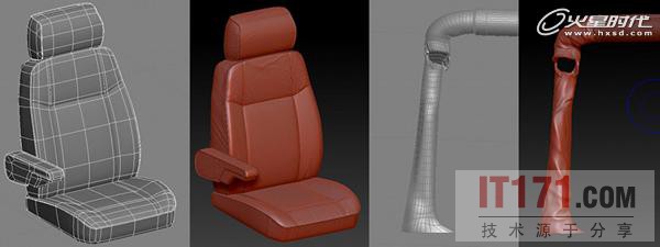 车座和车框架的褶皱纹理我都是通过使用ZBrush进行雕刻完成的。雕刻完后,我使用贴图应用到它们表面。(图06)