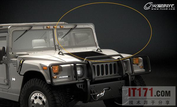 虽然这个悍马的形状不是圆的,但是相反的它有一个扁平的形状。所以我使用了上面说的方法尝试创建一个更柔和的反射。