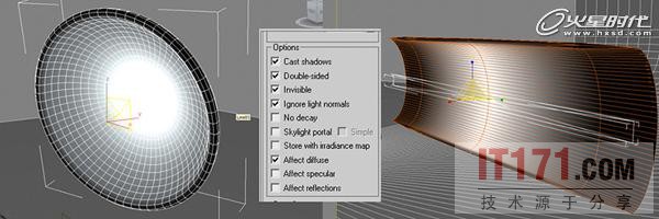 1号灯使用VRay面灯创建场景的气氛和反射;
