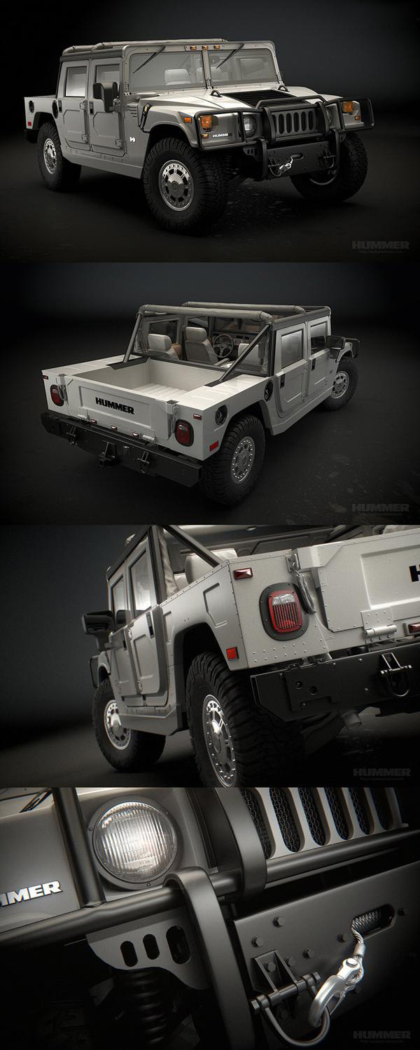 这篇教程教脚本之家的朋友们用3DSMAX制作悍马汽车模型,教程难度中等,需要学习者具备一定的基础,同时更需要的是学习的耐性和举一反三的思维,希望脚本之家的朋友们从这篇教程中学到东西。先来看看最终的效果图吧: