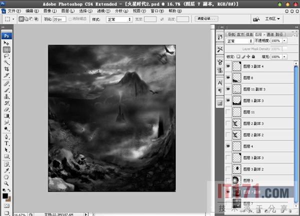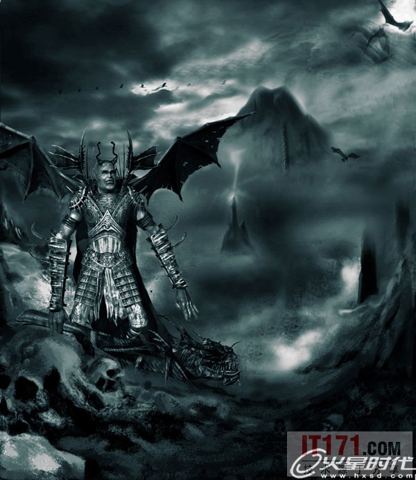 八、合成 一副好的作品,离不开后期处理。无论你怎么渲染,怎么去调节参数。都很难达到你想要结果,所以后期可以弥补。下面是我对这幅作品进行的一个后期处理。首先要找准自己的不足,我觉得颜色灰了点,金属盔甲的质感不够强。所以我先改这两项。之后我加入自己绘画的背景,对色彩的要求是气氛融洽。色调统一,这里我把色彩平衡中的蓝禄值部分加强,然后让背景模糊,使前后分开,千万别背景喧宾夺主,当然也不能让前景太过于抢眼。如图: