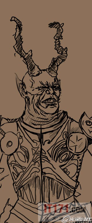 一个好的作品取决于他的设计,设计的好坏会决定作品的质量。我的设计灵感来源于《魔兽争霸》里的恶魔猎手,经过自己无意识的修改,草稿如下: