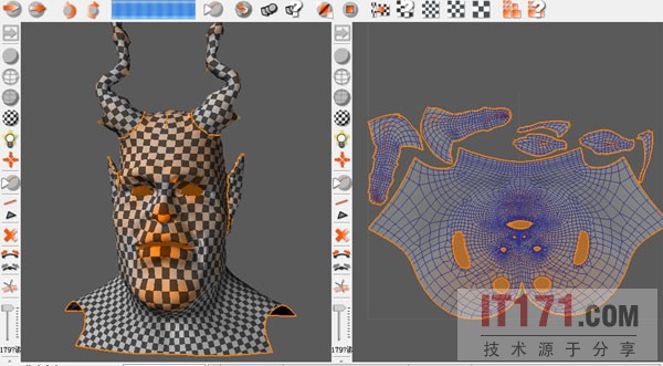 三、uv划分 关于uv,我主要是以nufold3d展开,关于nufold3d我在这不做详细的讲解,这属于一个傻瓜软件。值得注意的就是将局部的uv展成平面就行了(特别是五官),原则就是要便于贴图,让uv在没用拉伸的情况出现就可以,如果有特写镜头,就要仔细的调整。在这我向大家推荐一个uv插件_deep uv,我经常用他来松弛uv的重叠。
