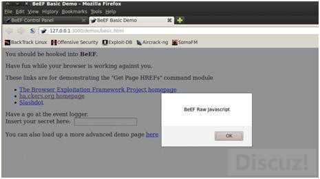 BeEF是浏览器攻击框架的简称,是一款专注于浏览器端的渗透测试工具。可在其官网找到更详细的介绍