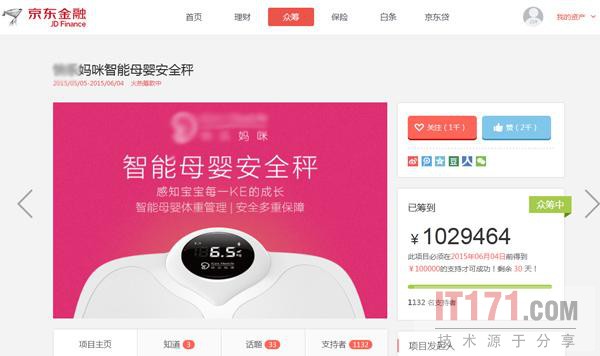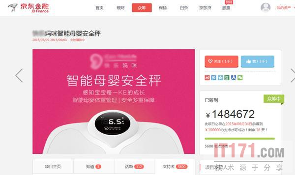 以国内母婴智能设备企业“XX妈咪”为例,其最新的智能母婴体重秤于5月5日上线京东众筹平台,在当天便豪夺超百万支持,达到130万成为当天京东极力推荐的众筹项目No.1。5月6日,就是在京东众筹上线的第二天,其还在中关村创业街举办了隆重的庆祝仪式,庆祝其首日众筹突破百万。根据半个月的跟踪观察,能够发现两个较为明显的问题。