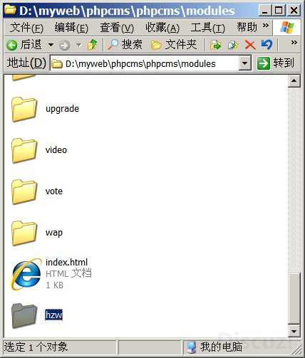 第一步:在phpcms\modules的目录下新建一个文件夹,名字为hzw