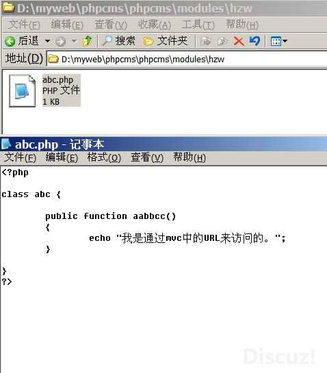 注意事项:abc.php里面的内容,必须要用class类的写法,否则会提示constrol找不到,即mvc中的c找不到。。如果没有指定a,则调用init方法,如果没有指定init方法,则会显示Action does not exist.