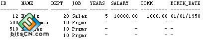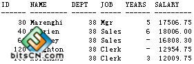 SELECT ID, NAME, DEPT, JOB, YEARS, SALARY