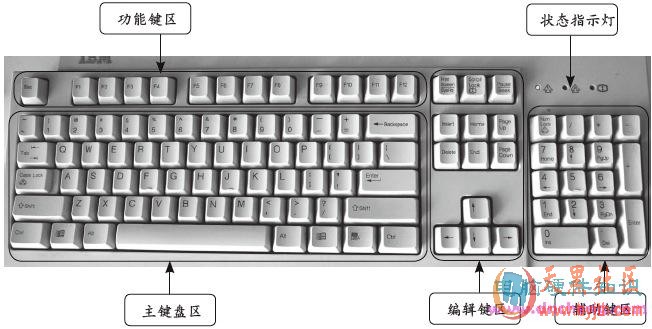 键盘通常由功能键区、主键盘区、编辑键区、辅助键区和状态指示灯组成。