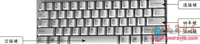 空格键:该键可谓是键盘上最大最长的一个按键,按下该键可产生一个字符的空格。