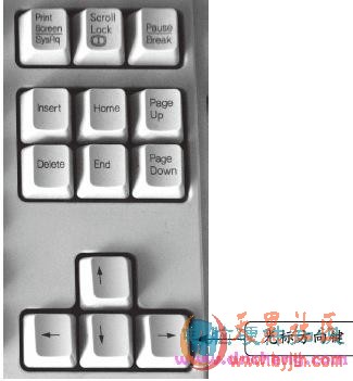 编辑键区共有13个键,下面4个键为光标方向键,按下该键,光标将向4个方向移动。上方9个