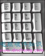 该区域通常也叫做小键盘,我们用它来进行输入数据等操作。当第一个键盘指示灯亮起时,该区域键盘被激活,可以使用;当该灯熄灭时,则该键盘区域被关闭。